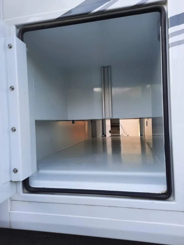 Cabine avec ouverture panoramique permettant de se tenir debout (capucine découpée et moquettée)