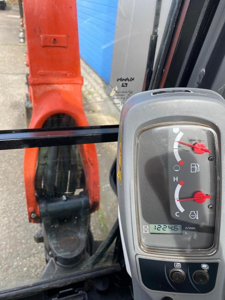 Machine d’occasion vendue avec 3 Godets et attache rapide. Elle est révisée, vidangée, aucun jeu dans les axes.