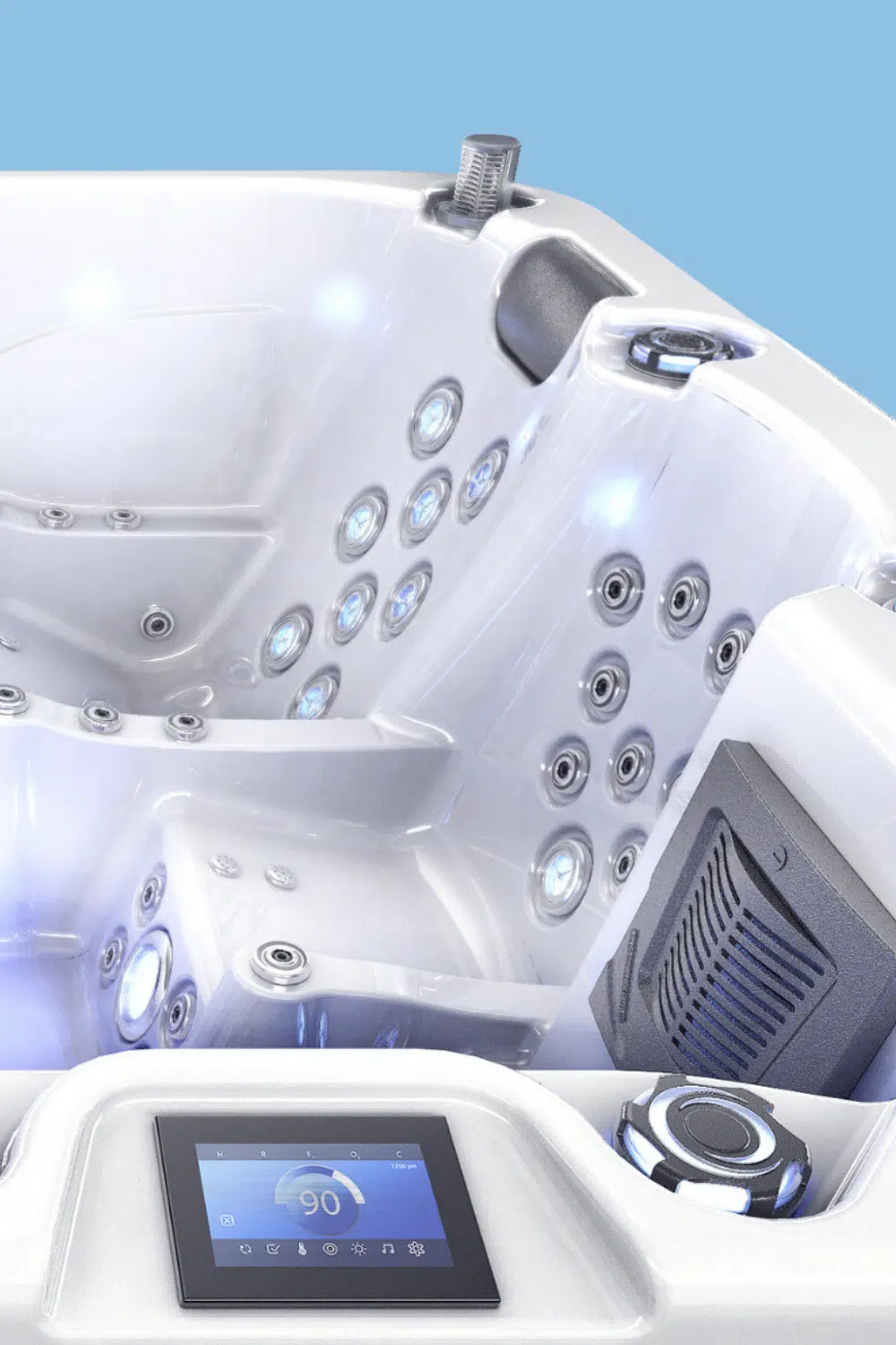 Fabriqué avec l’acrylique robuste d’Aristech’®, sa structure est complétée par une triple isolation pour une efficacité thermique optimale. Son interface tactile vous permet de contrôler facilement la température et la filtration. Les 98 jets d’hydrothérapie ciblent stratégiquement les zones de tension, promettant une relaxation complète.