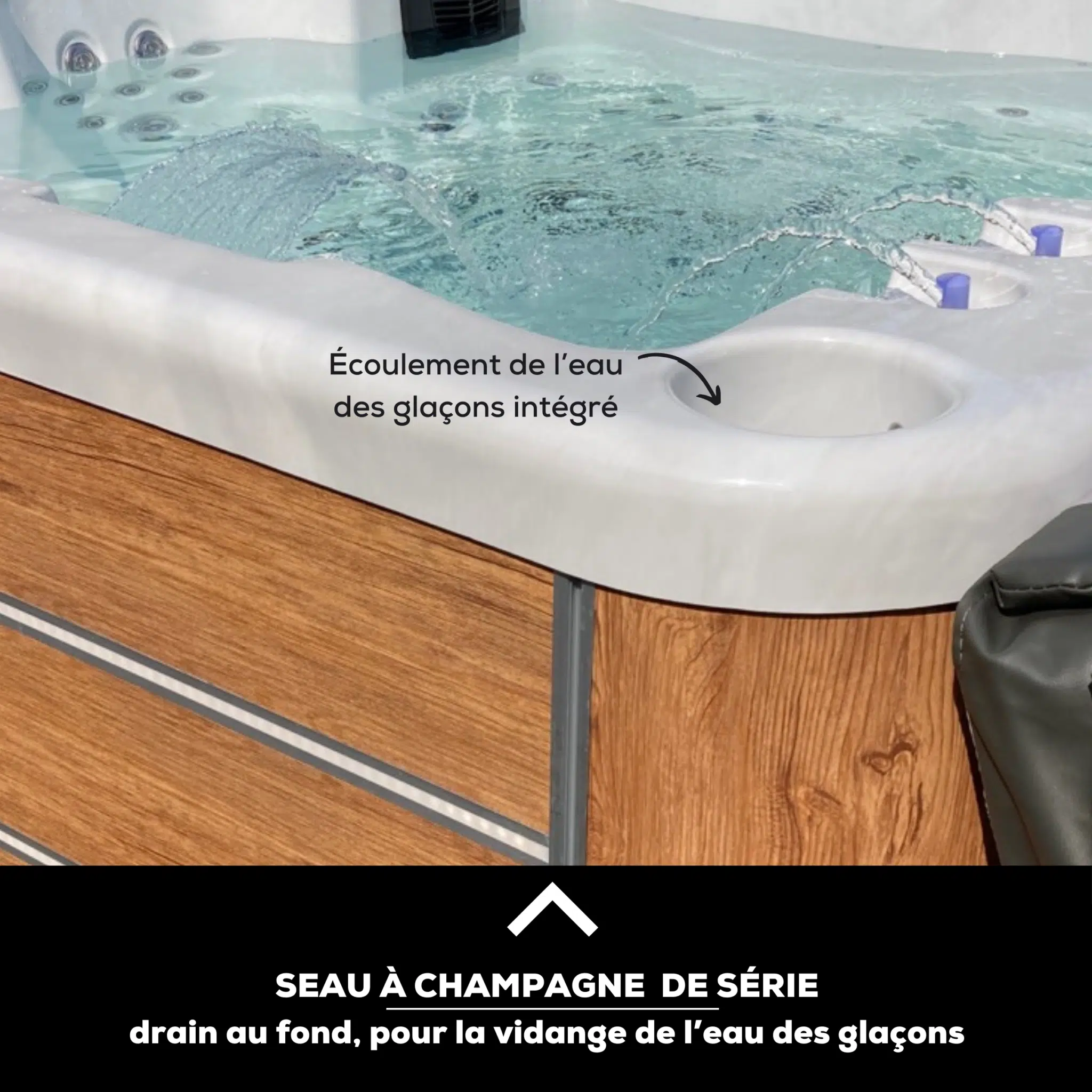 Pensé pour une consommation énergétique réduite, sa conception avancée garantit une efficacité thermique sans précédent. Avec ses multiples couches isolantes et son système réflecteur de chaleur, notre Spa conserve la chaleur même pendant les froids hivernaux. Sa surélévation unique de 20 cm, innovation française exclusive, empêche le froid d’infiltrer l’habitacle.